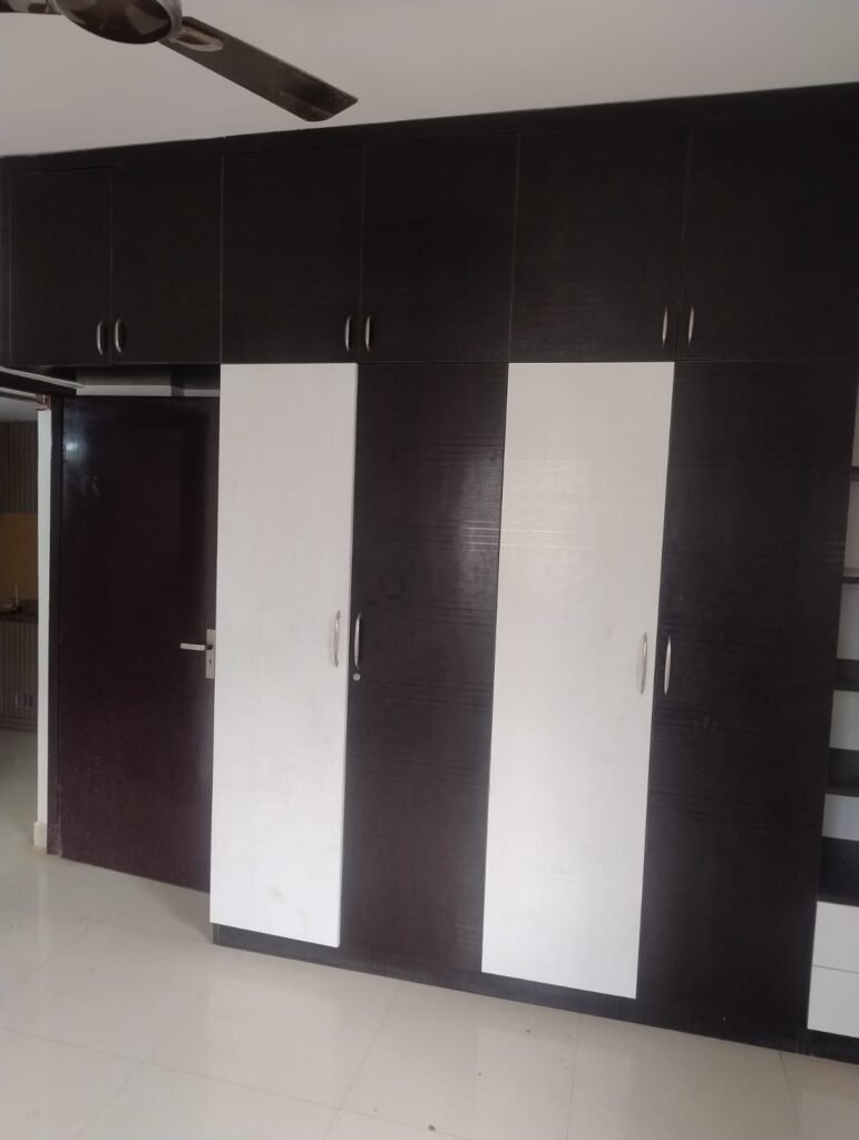 Its a spacious and well-ventilated 3 BHK flat with a refreshing swimming pool view available for rent. This corner unit offers complete privacy with no common walls and comes with ample storage with wardrobes in all bedrooms, dining area, and kitchen. It also includes a dedicated work-from-home setup, UPS and geyser provisions, two balconies, a utility area, and reserved parking for one car and one bike.